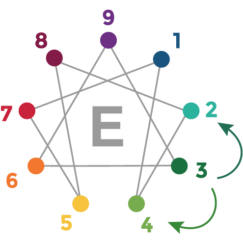 You are connected to the two numbers on the right and left of the Enneagram diagram. We call these numbers wings. As a Type 3, your wings are Type 2 (The Nurturing Supporter or Helper) and Type 4 (The Introspective Individualist or Romantic).