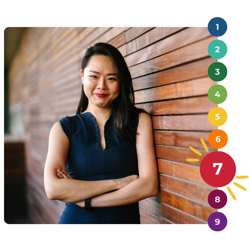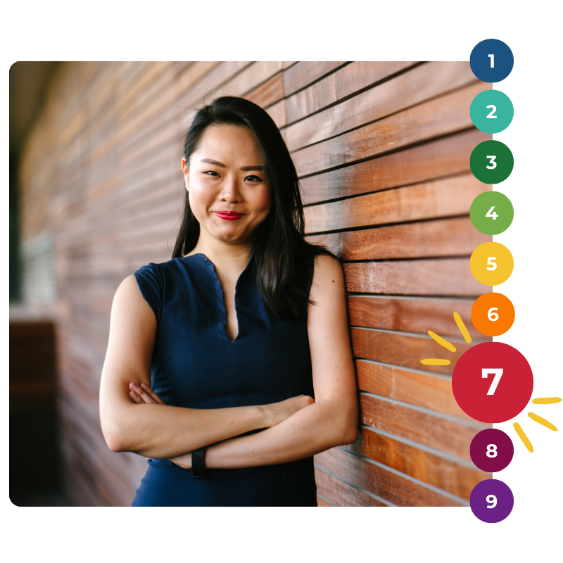 For Type 7, the Wings are Type 6 and Type 8. Wings are the two Enneagram Types directly next to your Main Type on the Enneagram diagram. We naturally access traits from both wings in varying degrees depending on the situation. No matter how much we lean on these Wing influences, your core Type remains the guiding force behind our deepest motivations and perspectives. See if you can spot when each Wing shows up and influences the overall tone, perspective, and behaviors of your main Type.