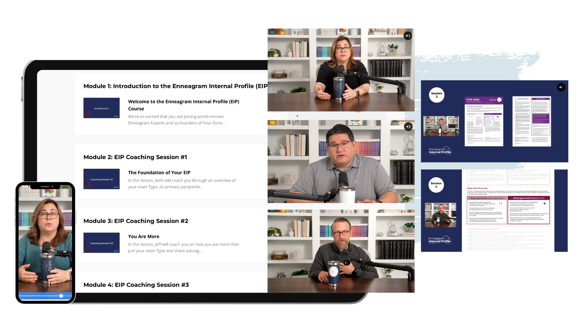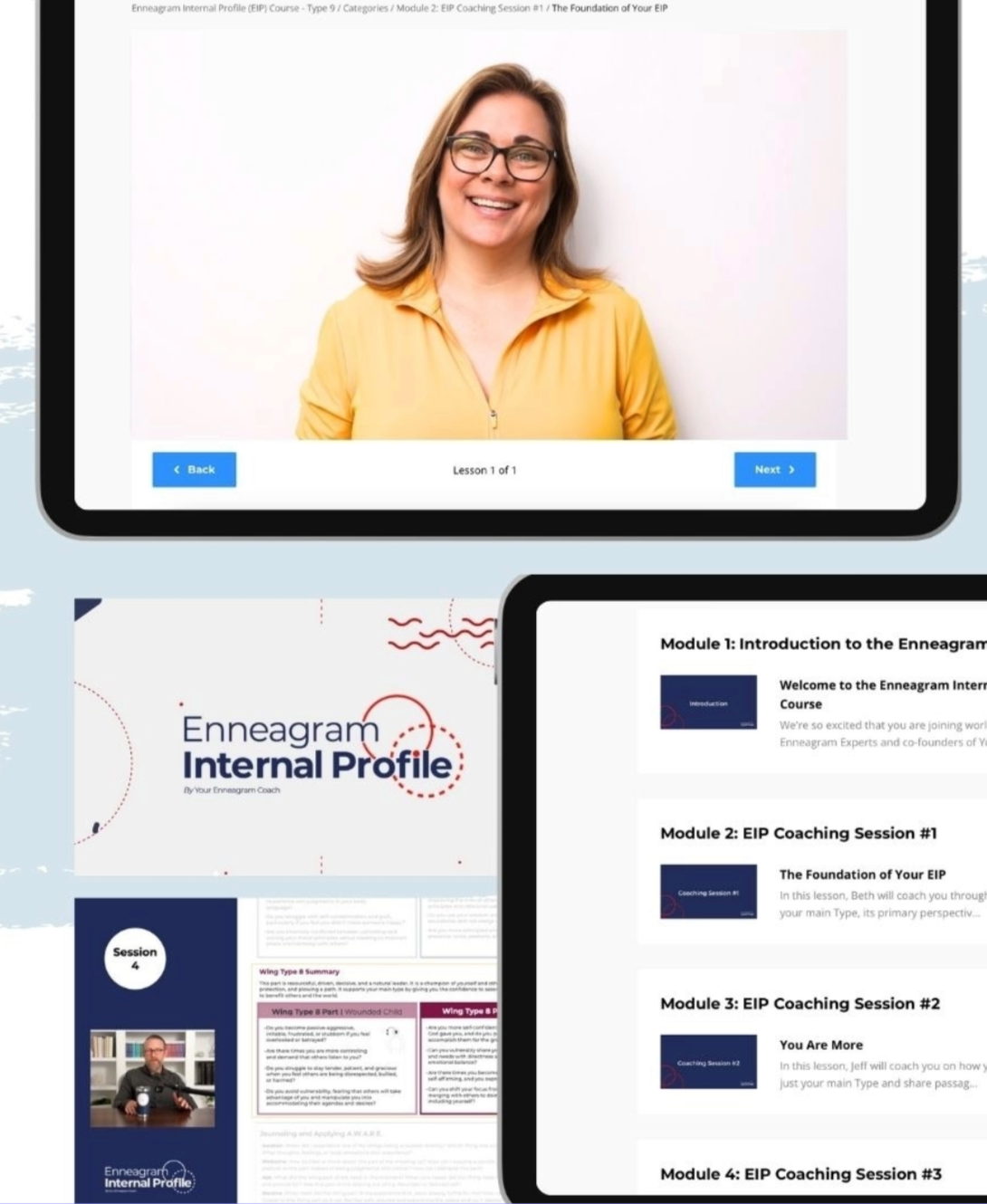 Join Enneagram experts and coaches, Beth and Jeff McCord and Adam Breckenridge, as they guide you in your EIP journey. It's like having your own coaches in fun, easy-to-watch videos. They'll help you understand your Enneagram type in a whole new way, just like in a personal coaching sessionâonly easier and more affordable!