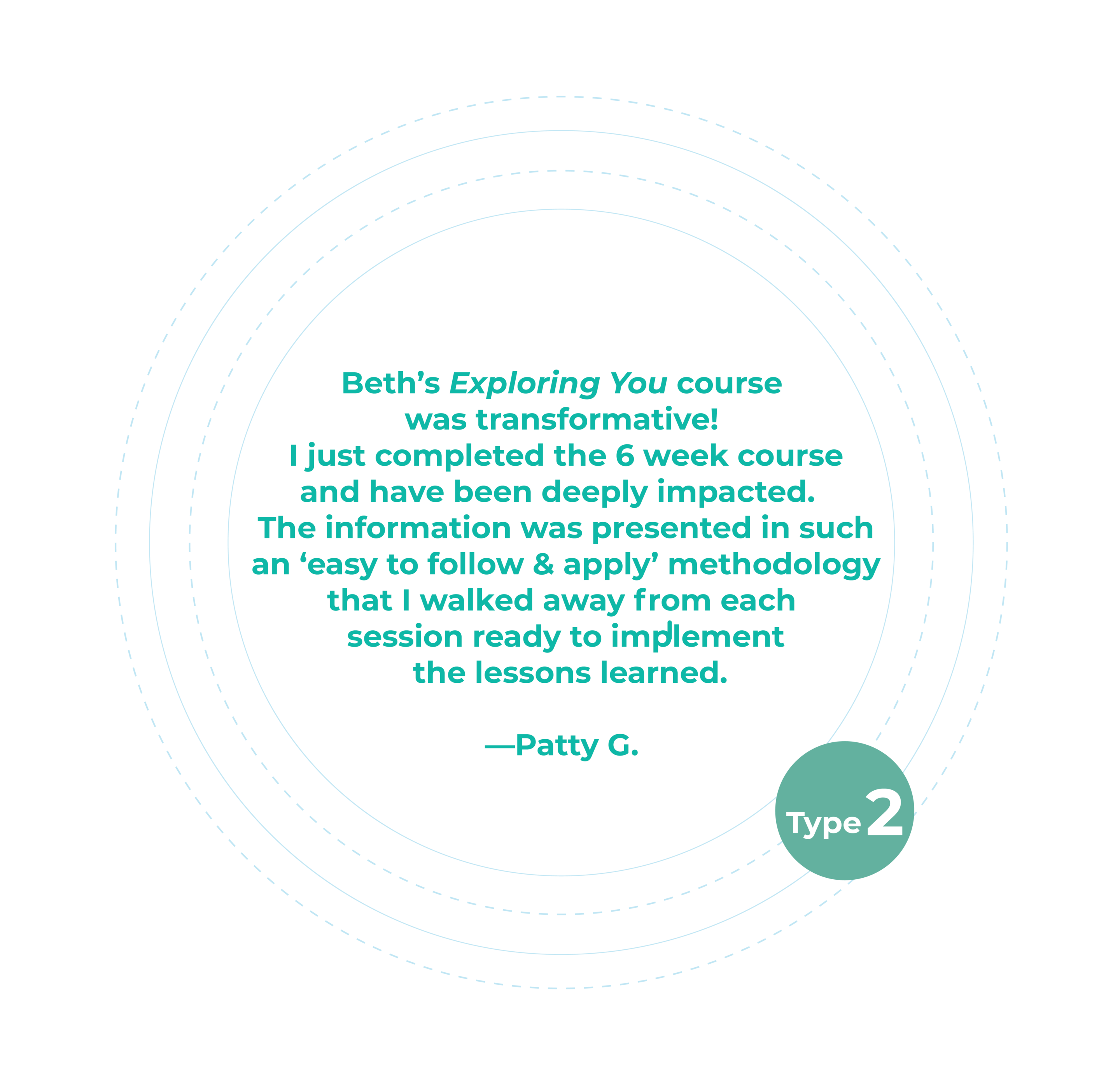 Beth empathizes with each Type's challenges and celebrates the unique gifting each brings to the table.