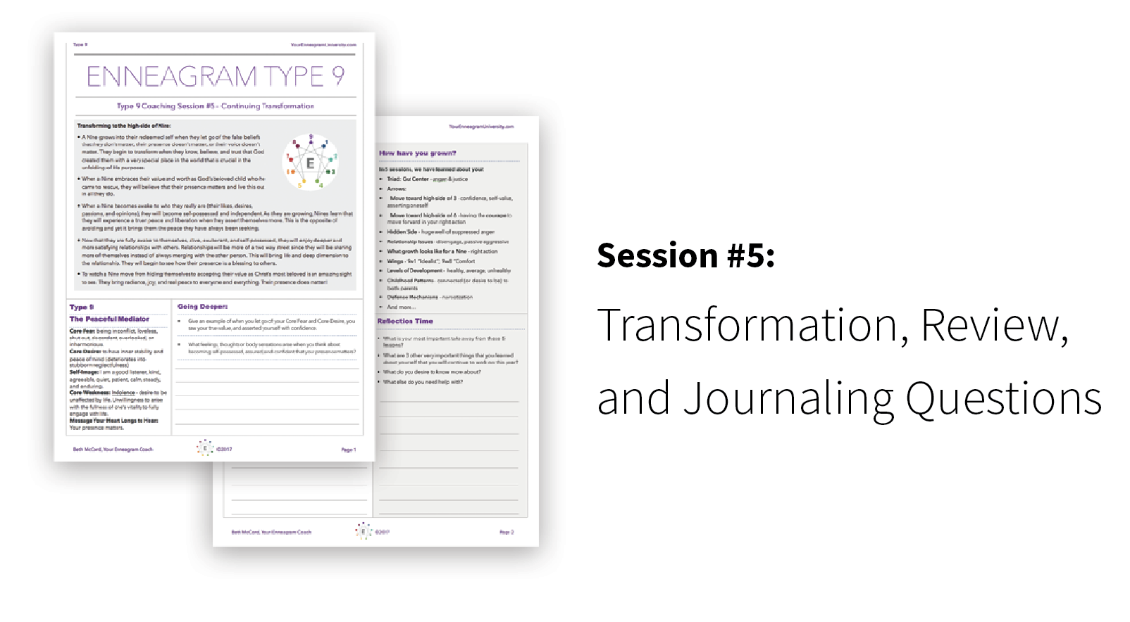 Exploring You includes a FREE Discovering You Course ($49 value). This course teaches you what the Enneagram is, how to use it for personal growth, and an overview of all nine Types. This understanding of the Enneagram will help you navigate through the remainder of the course. Next, you’ll go through 5 pre-recorded coaching sessions with a corresponding Guide Sheet. These Guide Sheets break down your personality type into bite-size lessons so you can learn, stretch, and grow without becoming overwhelmed. These sessions enable you to experience accelerated growth and transformation.