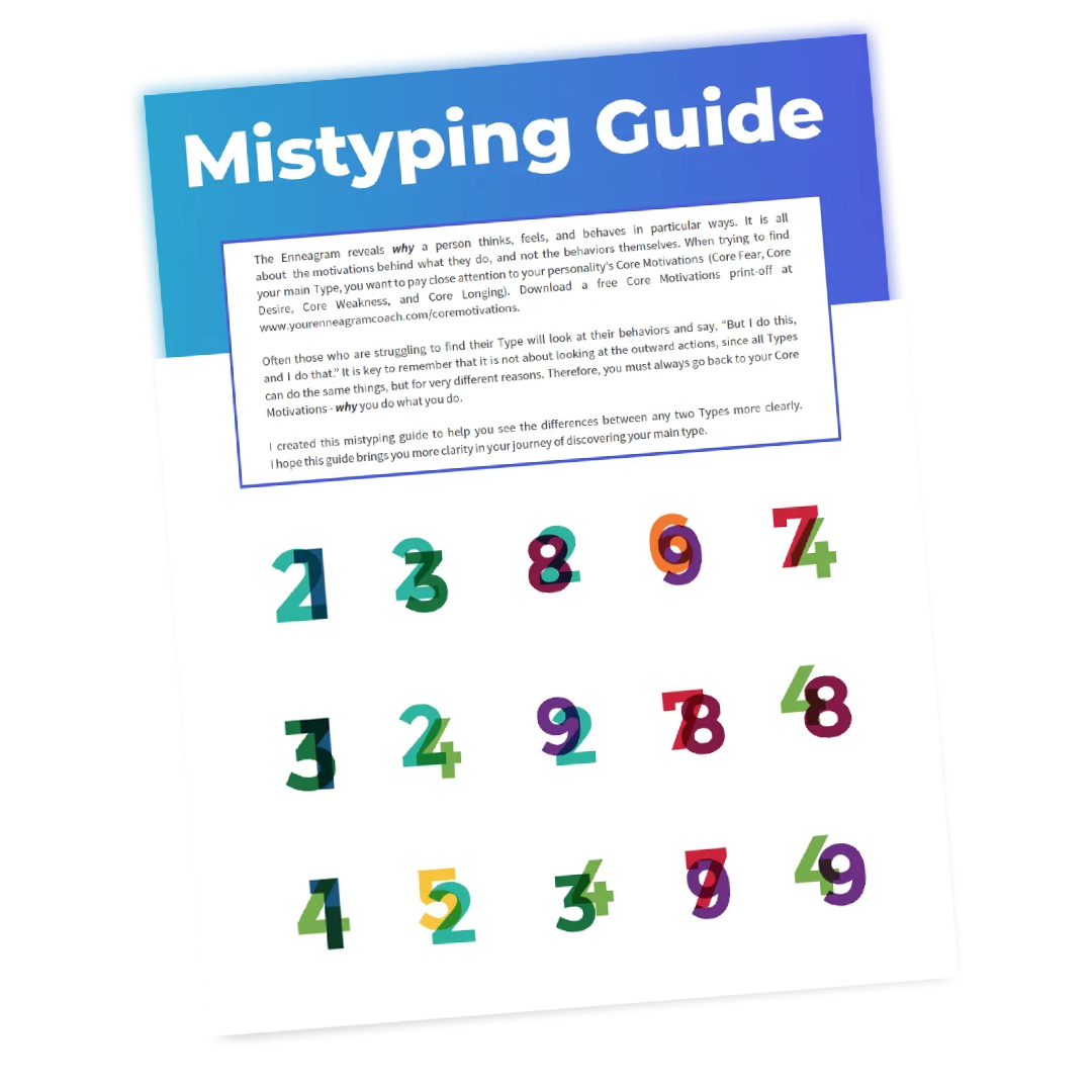 If you’re still stuck between two types, don’t worry! That’s where the Mistyping Guide comes in. This free resource highlights the biggest differences between commonly confused Enneagram types, making it easier to find your best fit.