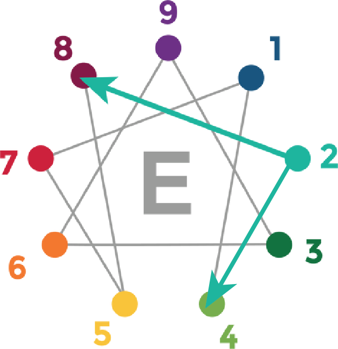 When under stress, Type 2 moves toward Average to Unhealthy Type 8